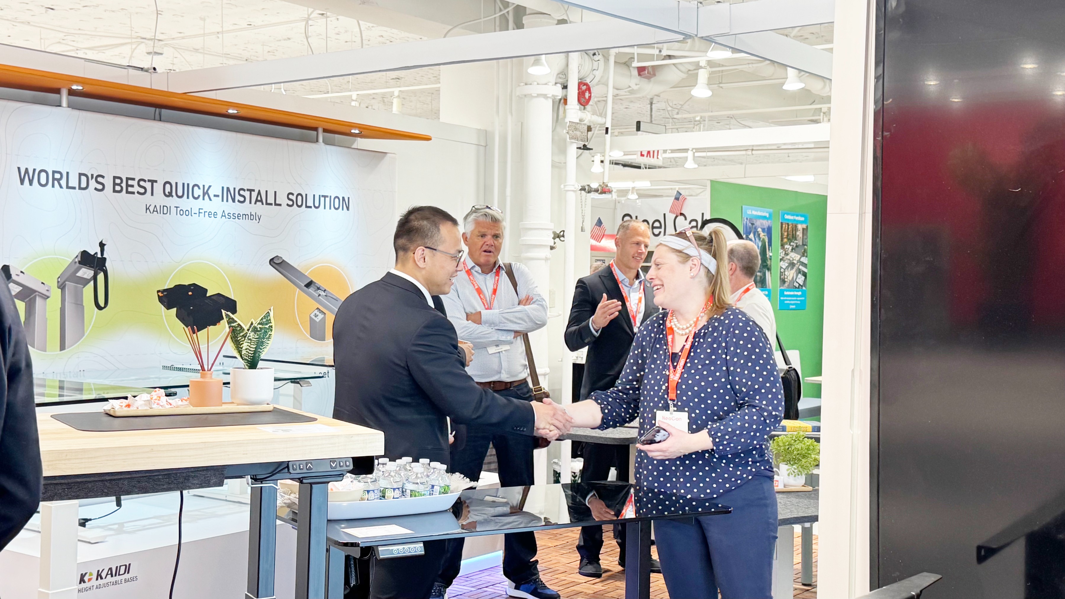凱迪股份美國(guó)團(tuán)隊(duì)和國(guó)內(nèi)研發(fā)、銷售團(tuán)隊(duì)攜智能升降桌產(chǎn)品,亮相于7-8106展臺(tái)。
